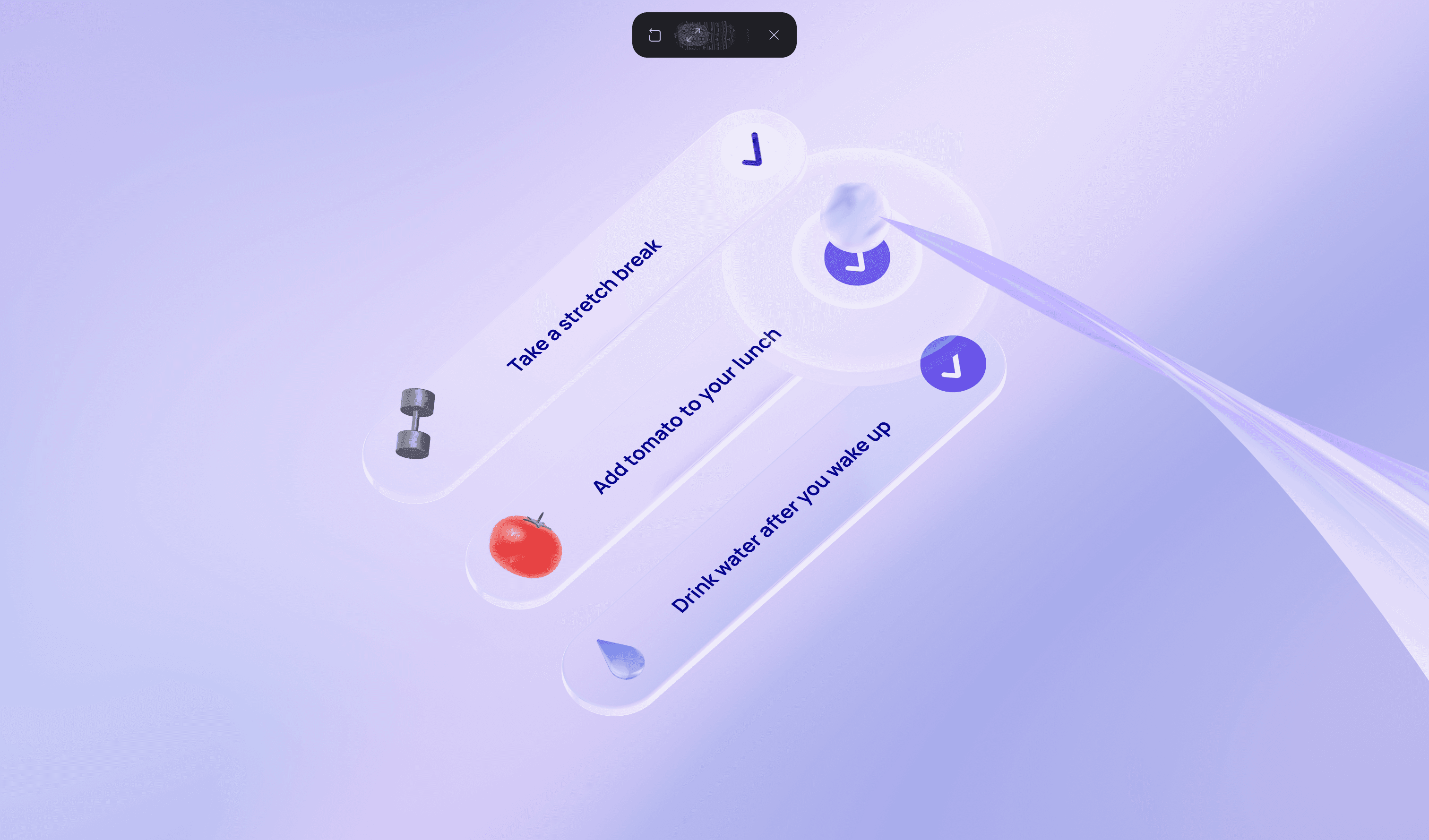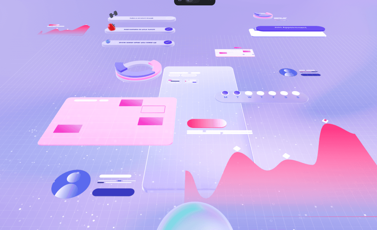 Different widgets that are animated comes into view, and the orb moves towards them